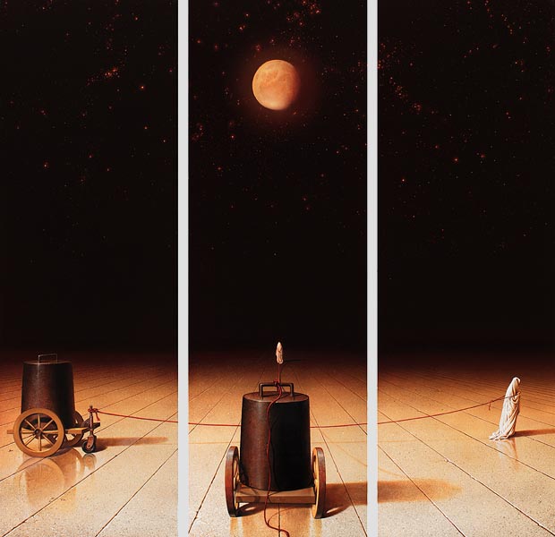 . Interpretation der vierten Dimension Triptychon 2013 Öl auf Leinwand je 150 x 150 cm
