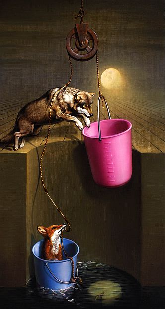 . Der Wolf und der Fuchs 2019 Öl auf Leinwand 80 x 44 cm