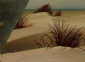 Dazu einige Erhöhungen der Dühnen und einige Schatten in den Gräsern und den Dühnen mit kleineren Flachpinseln. (oben Rechts)