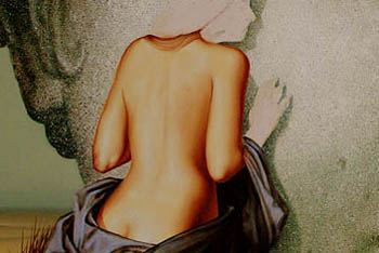 Danach wird auch der Körper der Frau auf diese Weise überarbeitet. Erst lasierende, farbliche Änderungen und dann Lichter und Schattenbereiche.