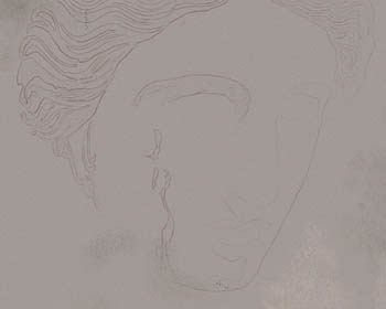 Er arbeitet noch einige Stunden an unterschiedlichen Stellen des Bildes. Viel am Kopf. Eine Weile am Körper und den Haaren der Frau.